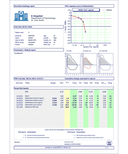 - Spirometry test with over 45 selectable parameters including PRE and POST test.